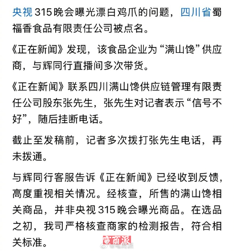 其中,与辉同行明确辟谣:所售商品并非央视315晚会曝光的问题商品,选品之初就已核查过相关检测报告,确保产品合规。